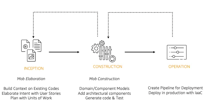 As a certified AWS partner, MidnK recommends the AI-DLC approach (AI-Driven Development Life Cycle) coined at Amazon and adapted for outsourced SaaS development.